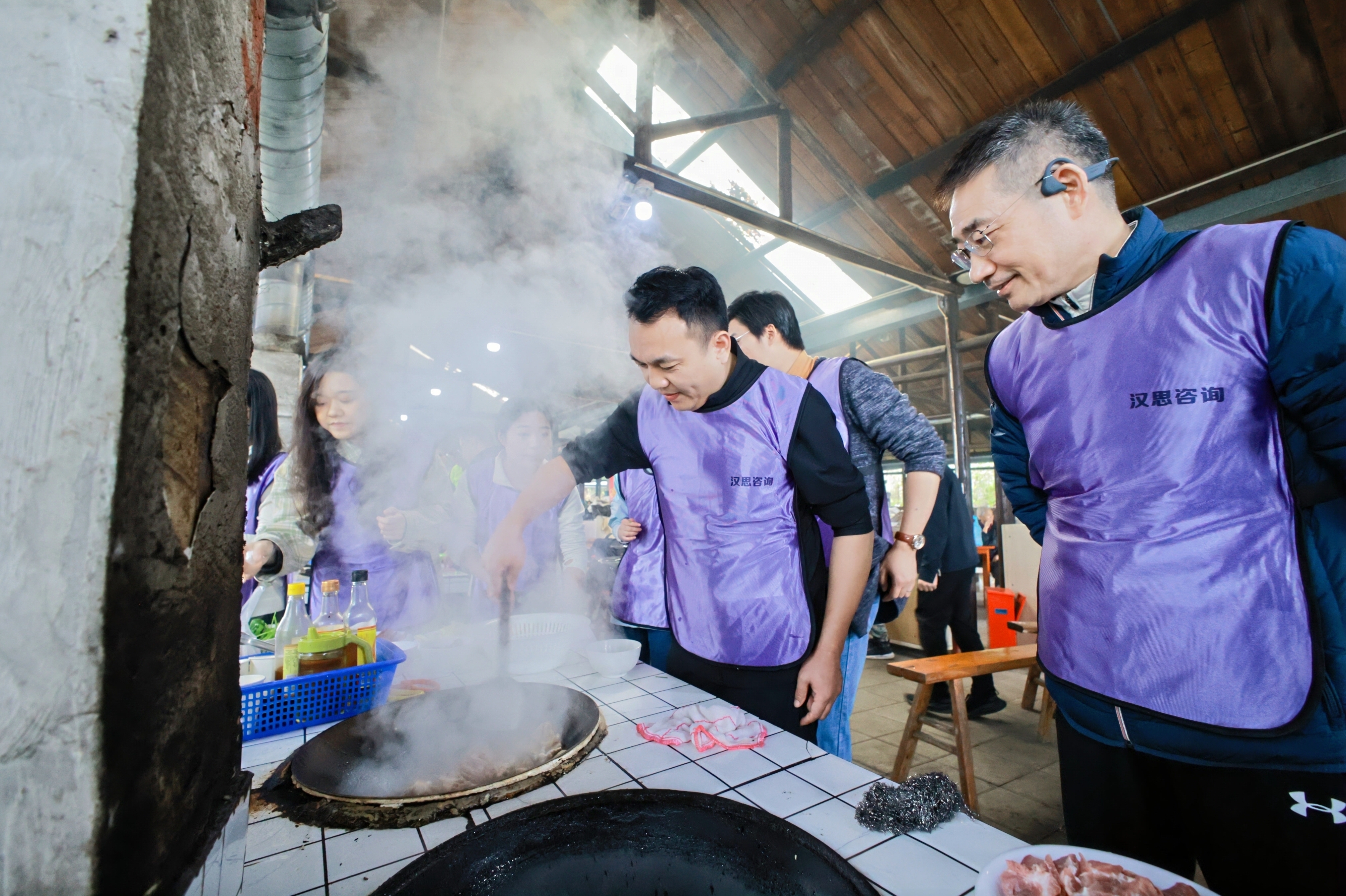 臨近中午,10個(gè)大鍋灶同時(shí)生火,“廚神爭(zhēng)霸賽”正式開(kāi)始。每組組內(nèi)分工明確、各展所長(zhǎng),各組之間相互配合,你幫我煮飯、我?guī)湍阕霾?,?dāng)各組的“拿手菜”端上桌、評(píng)委開(kāi)始品嘗打分時(shí),氣氛更是達(dá)到了高潮。在其樂(lè)融融的時(shí)光里,每個(gè)人都體會(huì)到了自己動(dòng)手、共同努力帶來(lái)的美味與幸福。